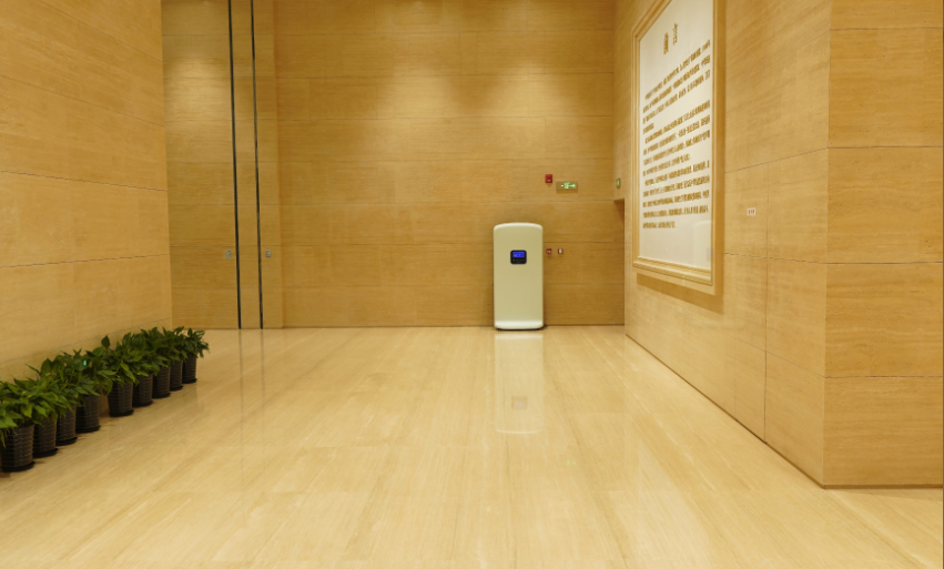 一楼是观众服务设施,设有门厅、多功能学术报告厅和贵宾厅。一楼和地下一楼公共区域大面积采用了浅色天然大理石铺贴,与壁画《日出东方》《民族脊梁》《中流砥柱》三幅作品相配,庄严肃穆中又略带温馨。作为首批中国20世纪建筑遗产、全国重点文物保护单位,纪念馆对于改造材料的选择是很严苛的,在改造的过程中,纪念馆采用了爱迪AD-1013石材粘结剂(白色)铺贴展厅的大理石。